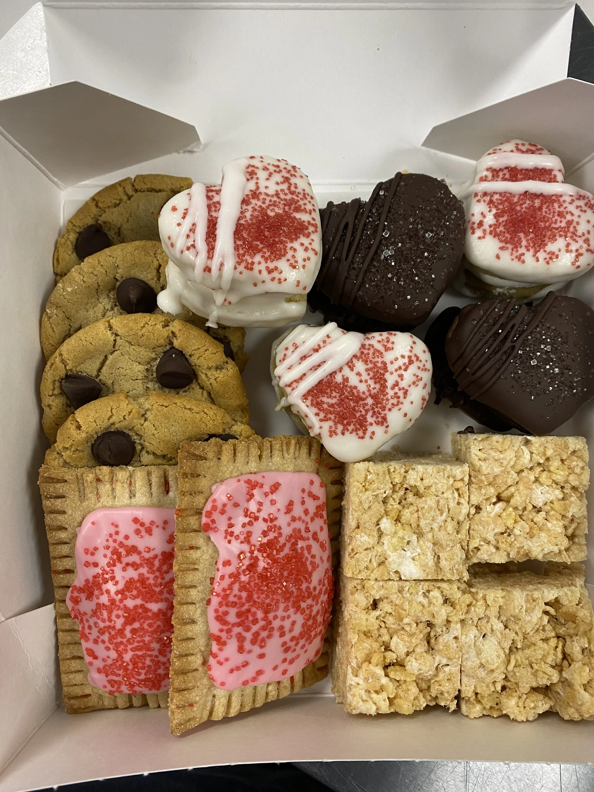 Mixed bakery box - mini pop-tarts, mini snack cakes, mini rice crispy treats & minichocolate chip cookies
